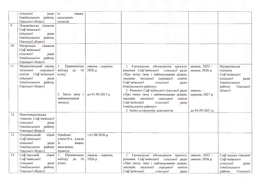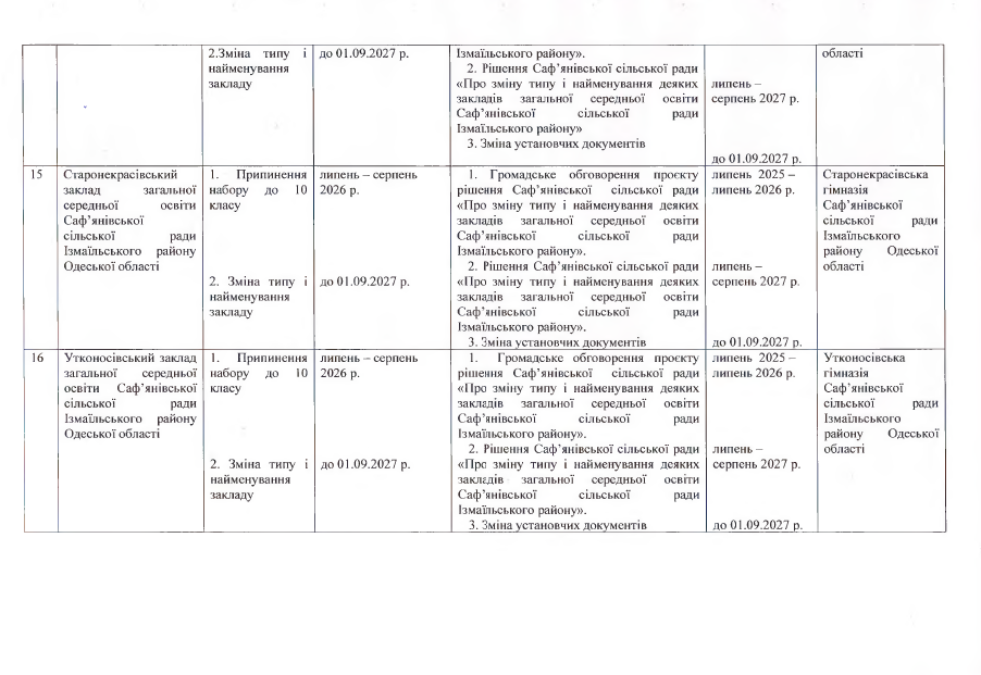 Про внесення змін до Перспективного плану трансформації мережі закладів загальної середньої освіти